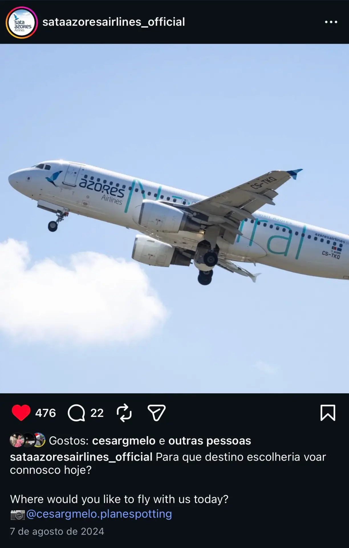 One of the most rewarding moments for a planespotter is seeing an airline featuring one of his photos and this just happened in 2024, when Azores Airlines featured a photo I took from this exact same aircraft on their official Instagram account.